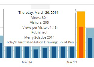 analytics2So if you have a spike like i did on March 20th, you can usually move your mouse over that column to find out why. What was on your site that increased the popularity. For me, it was the Spring Solstice. Holidays always see increased traffic. But you should see what happens every time Friday the 13th comes around.