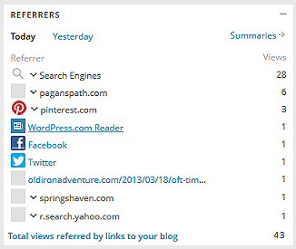 On the other side you can see more of the dynamics of what brought visitors to your site. What was the most popular article, what else might have been seen and is there a pattern to watch that can help you target more of the same type of information, or additional products or services. See that first item with 1 view for the day. Yep, even thought it wasn’t Friday the 13th, that post still comes up at least once or twice a week. Kinda proud of that one.